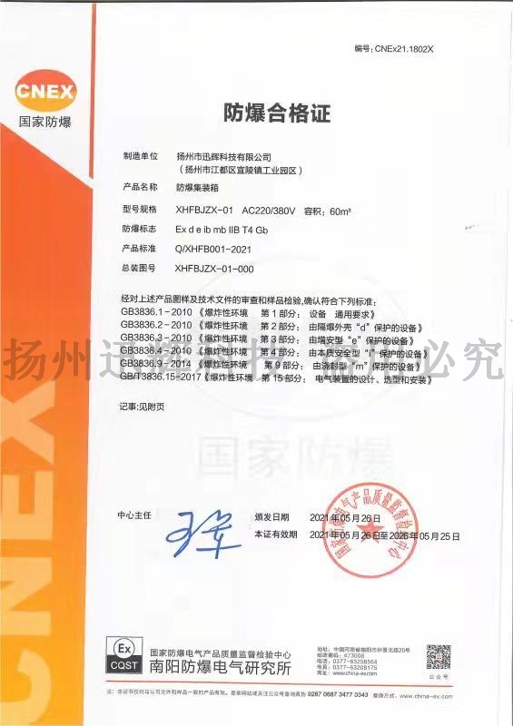 揚(yáng)州市迅輝科技有限公司坐落于風(fēng)景秀麗的歷史文化名城揚(yáng)州,是一家集設(shè)計(jì)、研發(fā)、生產(chǎn)、銷(xiāo)售、施工、售后服務(wù)于一體的綜合性實(shí)體。公司以“解決企業(yè)安全隱患、確保企業(yè)安全生產(chǎn)”為經(jīng)營(yíng)使命。公司專(zhuān)業(yè)定位于環(huán)保及防爆集裝箱、防爆電氣設(shè)備、防爆燈具、防爆風(fēng)機(jī)、防爆空調(diào)、防爆配電箱、泄爆隔爆......
