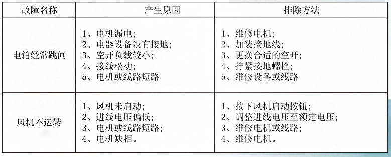 ①風(fēng)機(jī)是否有抖動(dòng),動(dòng)力線路是否完好、運(yùn)行中是否有異響、風(fēng)機(jī)及管道內(nèi)有無雜物。