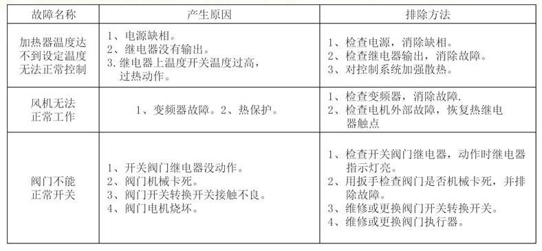 2、溫控表達(dá)不到設(shè)定位置:檢查電加熱管及線路,如有損壞,維修線路或更換電加熱管;調(diào)整脫附風(fēng)機(jī)風(fēng)量。